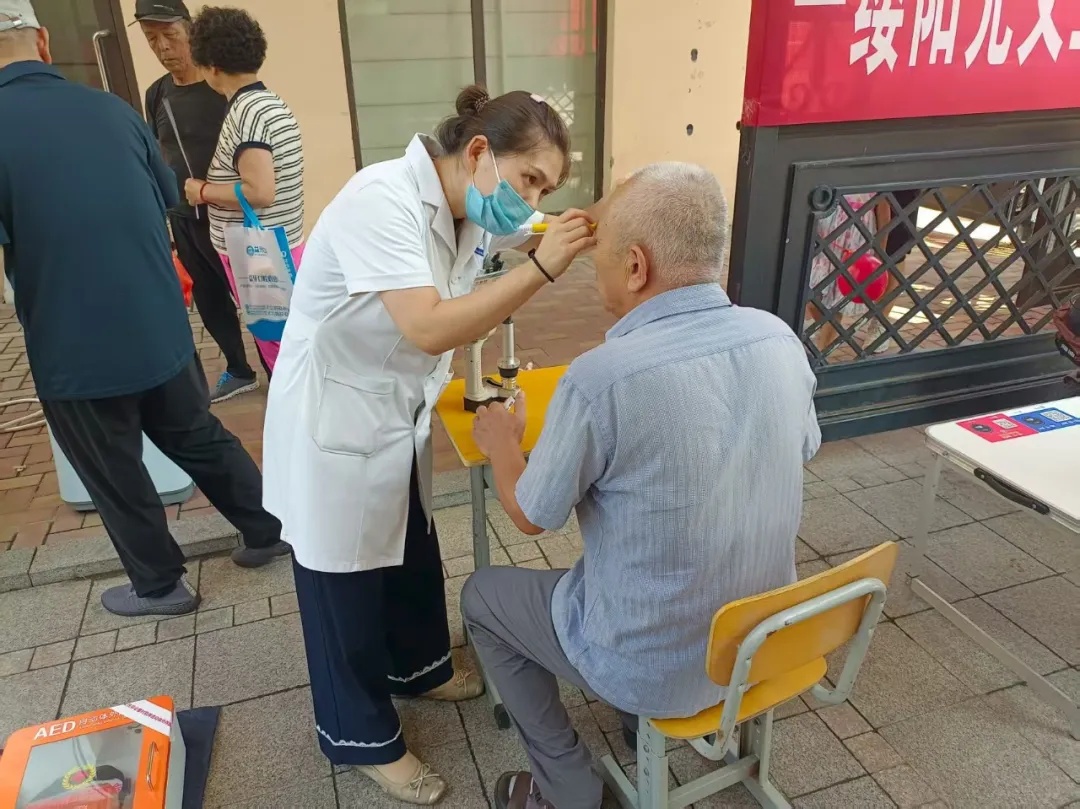 我院于香玲主任参加此次公益活动。活动现场于主任耐心地为每一位居民进行视力检测、眼病筛查、眼健康科普等,详细解答眼健康相关问题,并提供专业的诊疗建议。